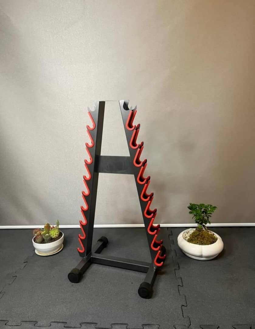 این نوع رک برای قرار دادن دمبلها در جهت افقی طراحی شده است. دمبلها در طول رک قرار میگیرند و به صورت مرتب و متوالی در آن قرار داده میشوند.رک دمبل عمودی: